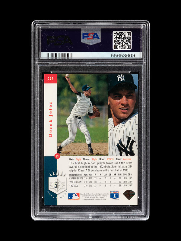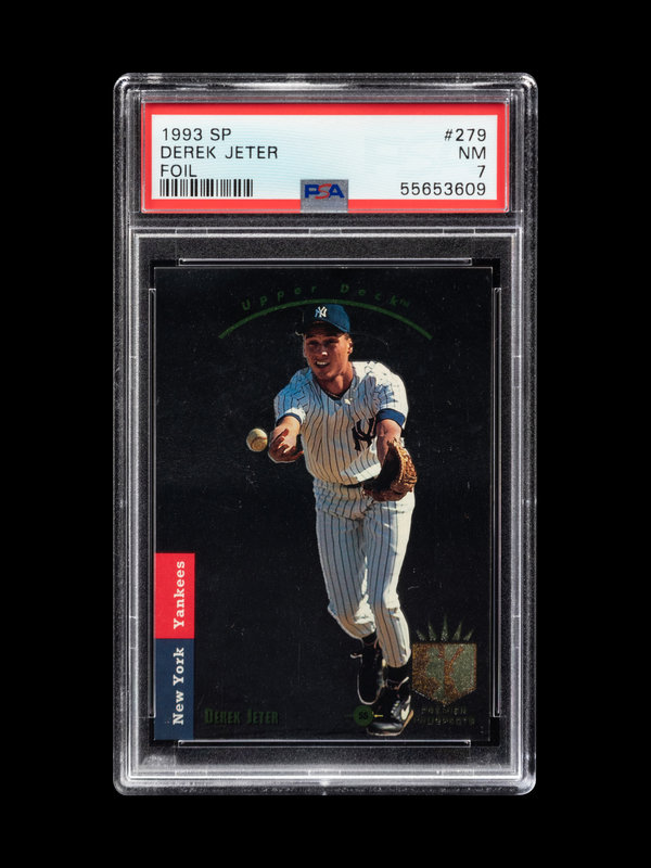 A 1993 Upper Deck SP Foil Derek Jeter Rookie Baseball Card No. 279, PSA 7 NM