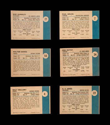 comprising of Arizin (2), Bellamy (4), Rod Hundley (21), Jones (22), Pettit (34) and Walter Dukes (50). Conditions average VG/EX. Acceptable for grading.