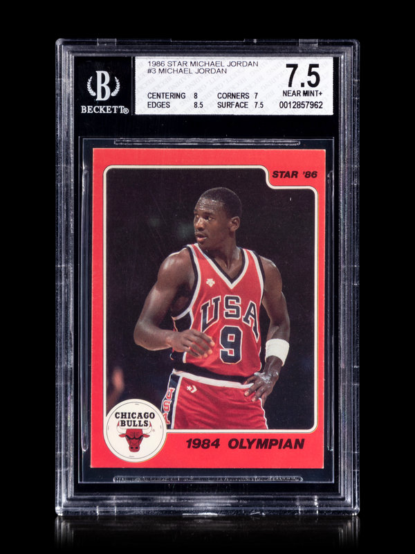 A 1986 Star Michael Jordan Set Break Basketball Card No. 3 1984 Olympian BGS 7.5 Near Mint +