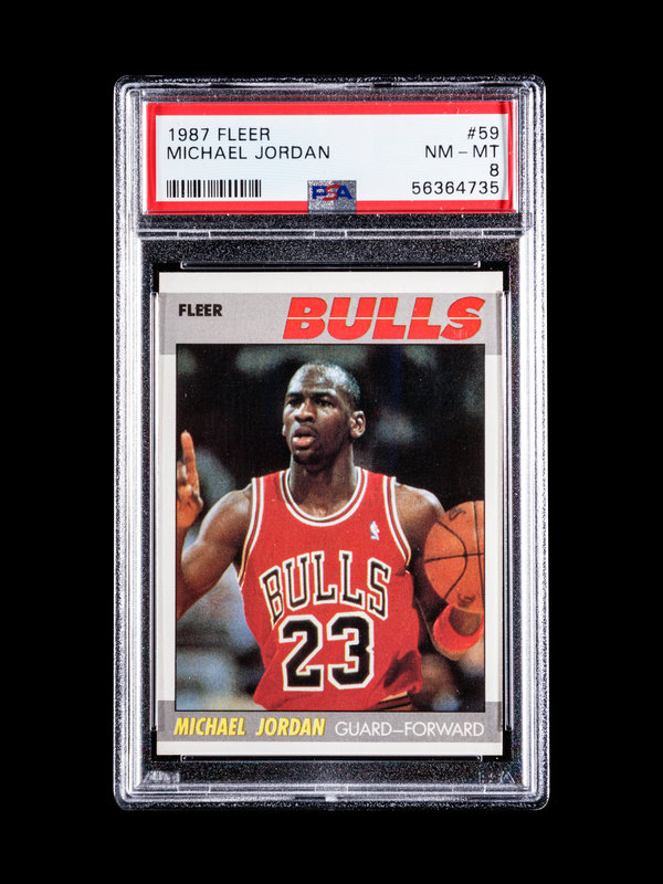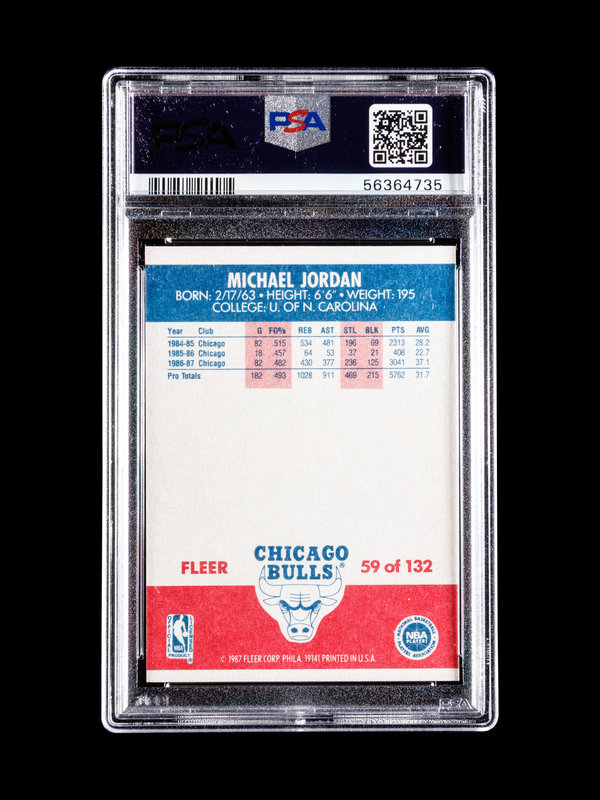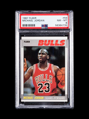 A 1987 Fleer Michael Jordan Basketball Card No. 59, PSA 8 NM-MT