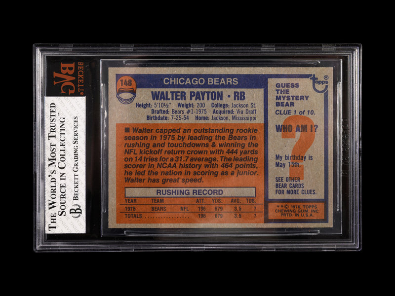 A 1976 Topps Walter Payton Rookie Football Card No. 148, BVG 8 NM-MT