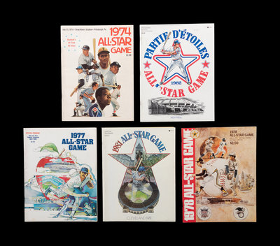 A Group of Five 1970s - 1980s Major League Baseball All-Star Game Programs and Media Passes,