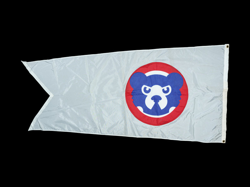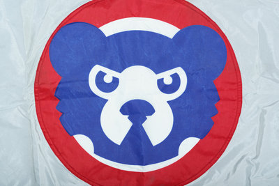 Dual sided white flag with stitched Cubs face logo. Letter of authenticity on Chicago Cubs stationery dated September, 1995. An uncommon artifact from the Friendly Confines prior to current renovation.