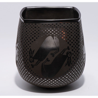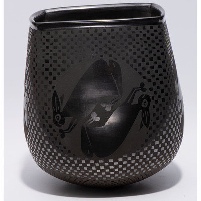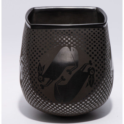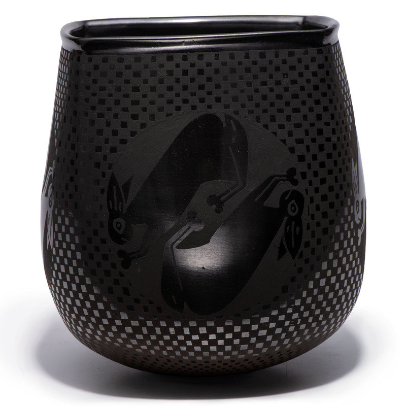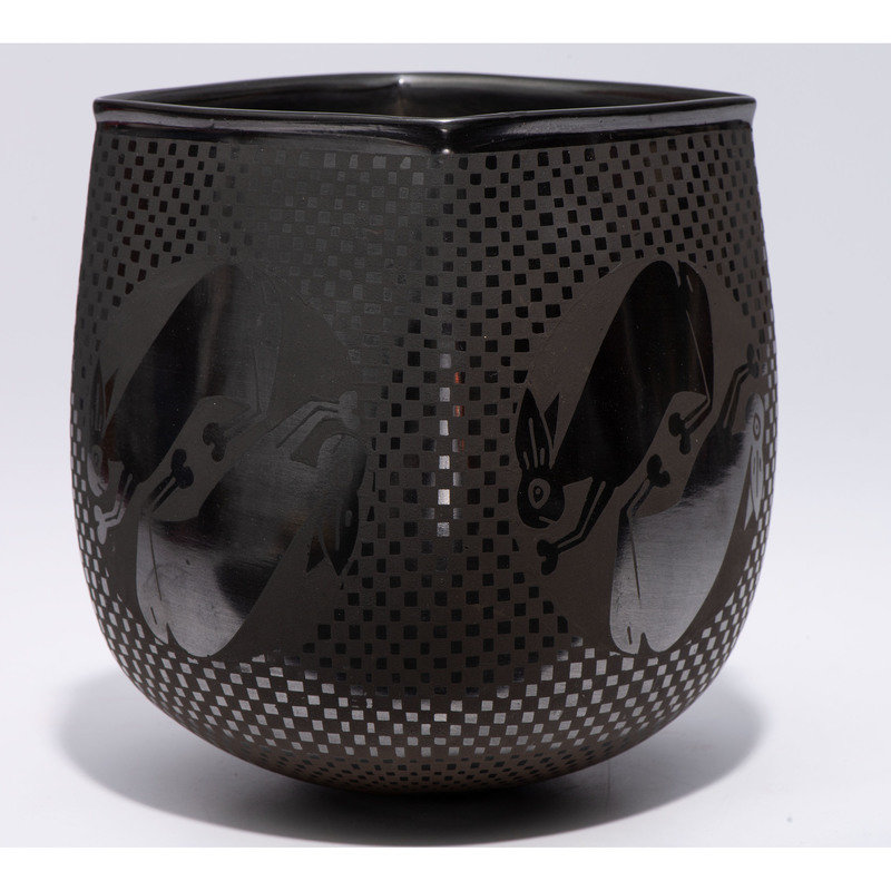 Blackware Pottery Vase, with Rabbits
