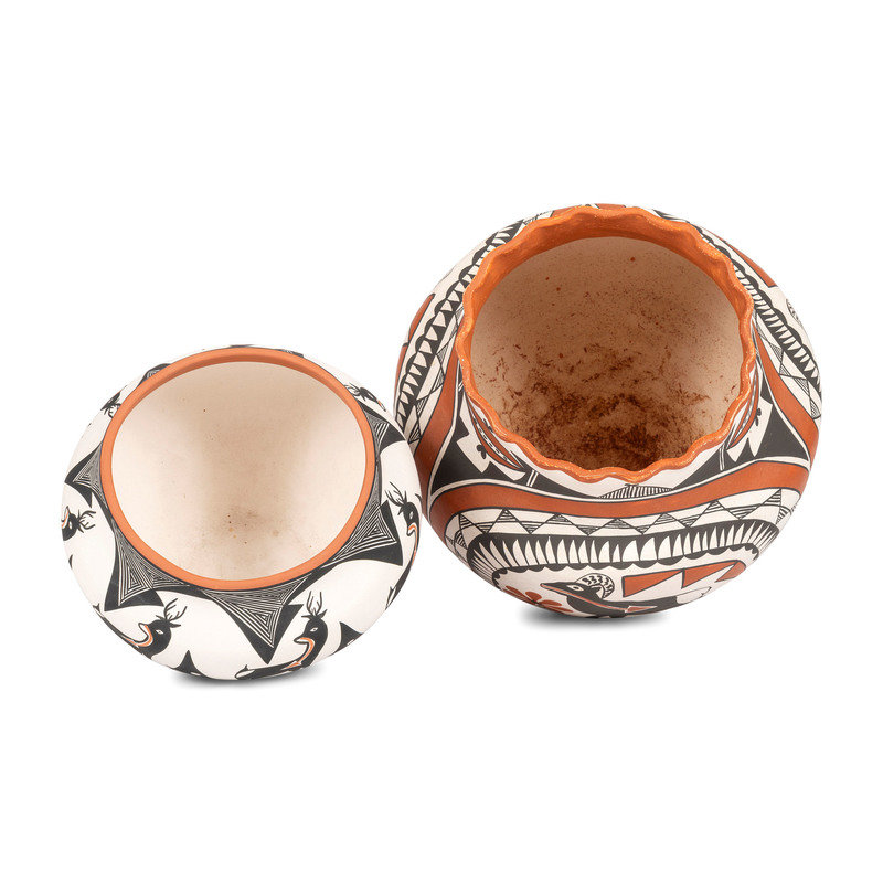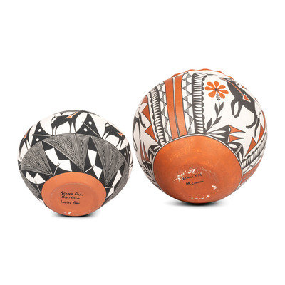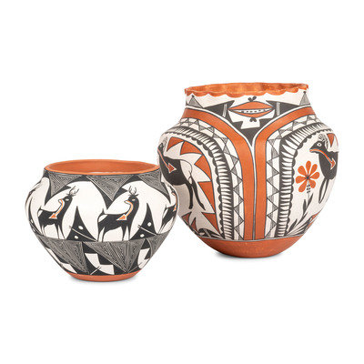 Acoma Pottery Jars, with Deer and Bighorn Heartline Designs