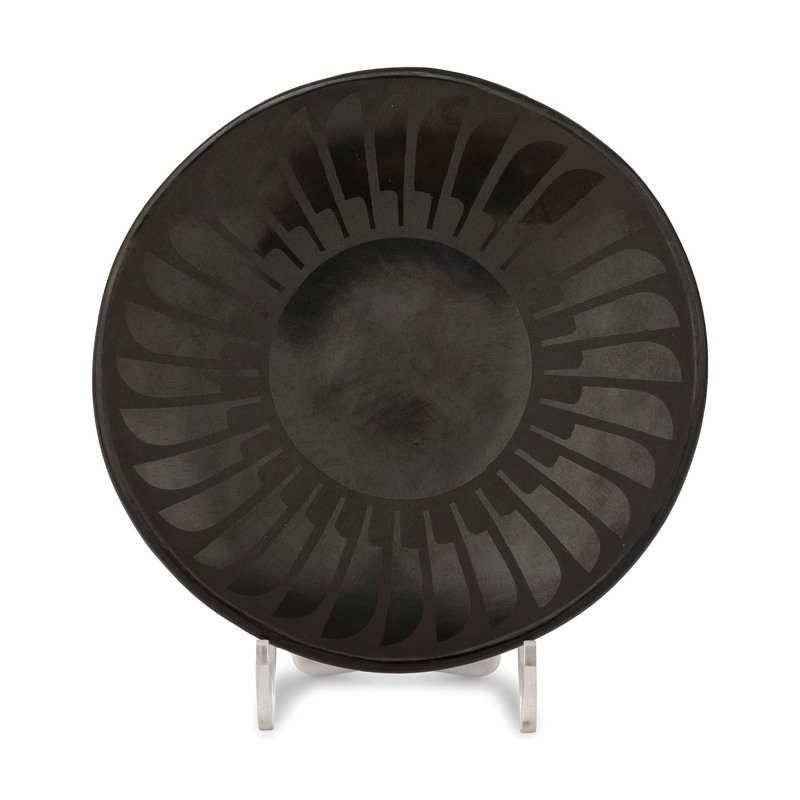Blackware Pottery Plate, with Repeating Feather Design