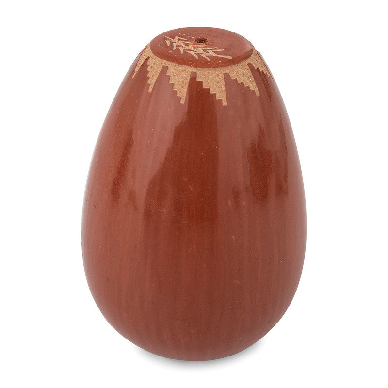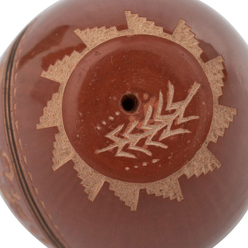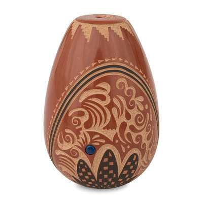 Red and Black Sgraffito Pottery Seed Jar, with Lapis Bead