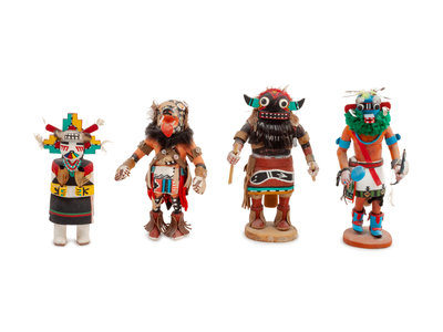 Collection of Hopi Katsinas and Apache Carvings
