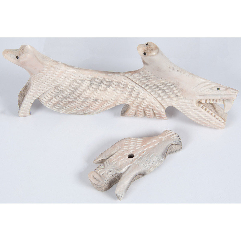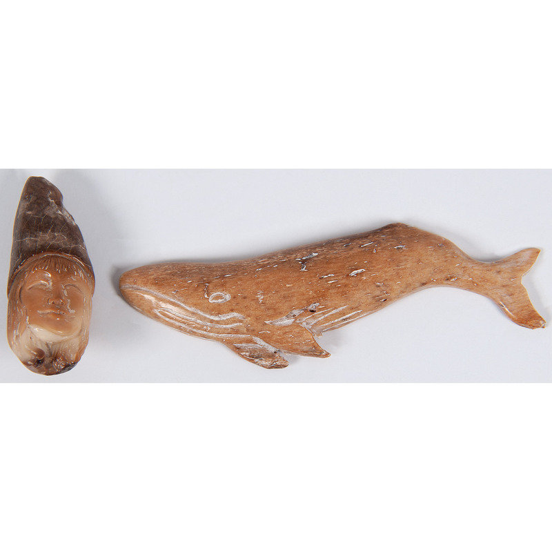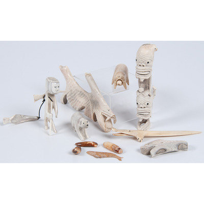 Collection of Alaskan Eskimo and Greenlandic Inuit Whale Bone and Walrus Ivory Tupilaks and Carvings