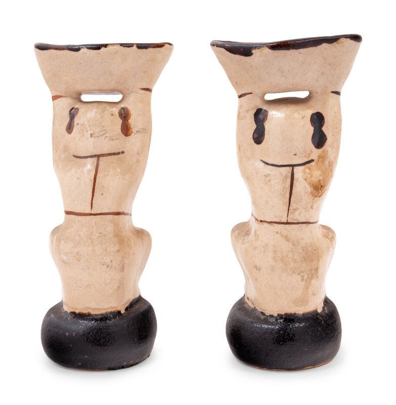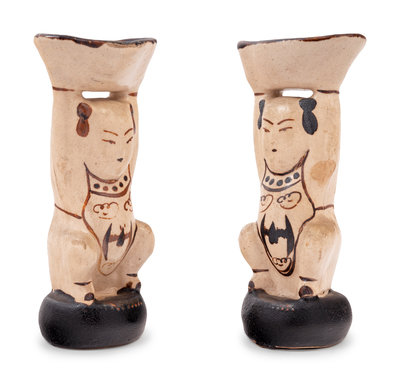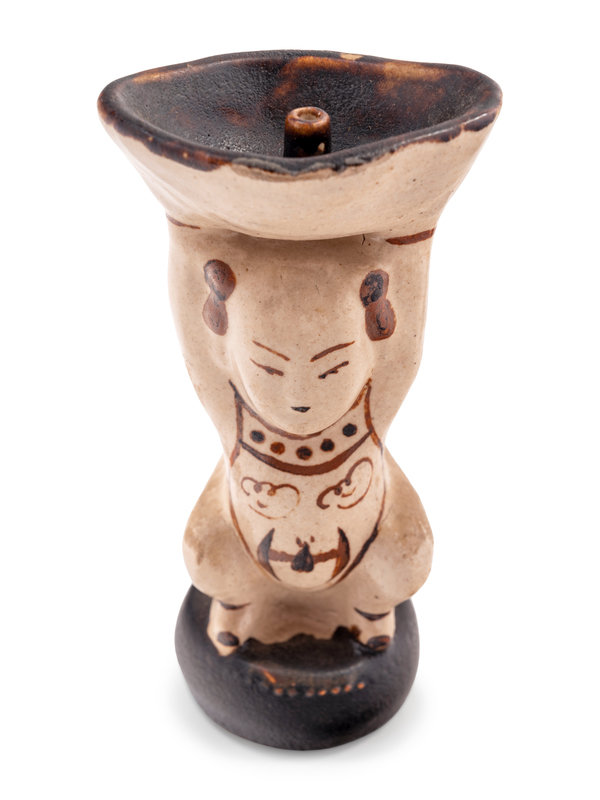 A Pair of Chinese Cizhou Style Porcelain Figural-Form Candlesticks