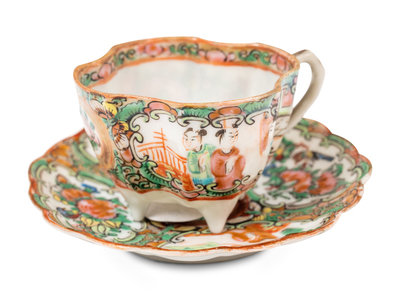 Diameter of larger saucer 5 3/8 in., 13.8 cm.