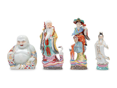 Four Chinese Famille Rose Porcelain Figures of Immortals