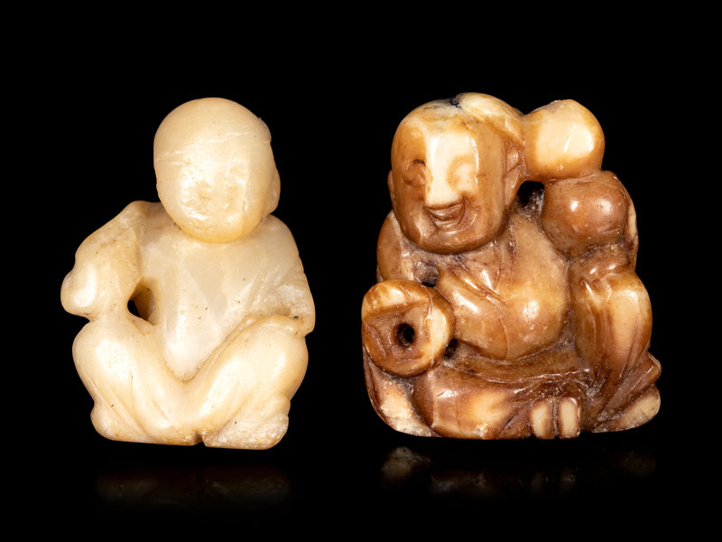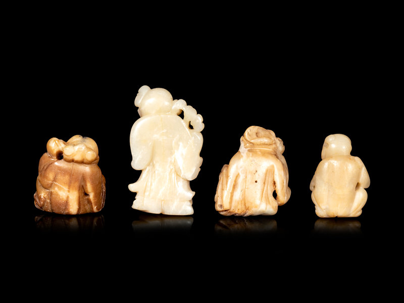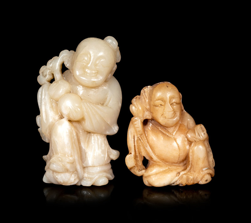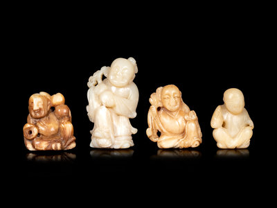 each stone softly polished and carved to show the figure with a cheerful expression.