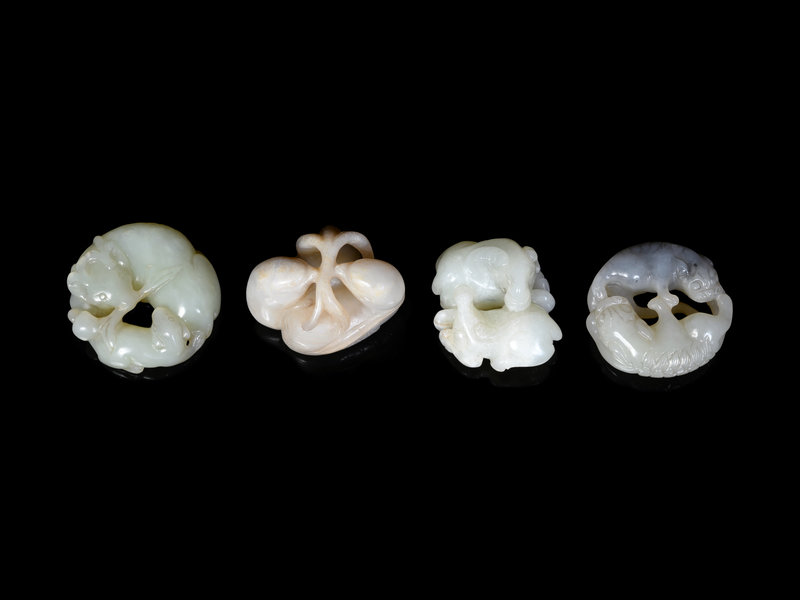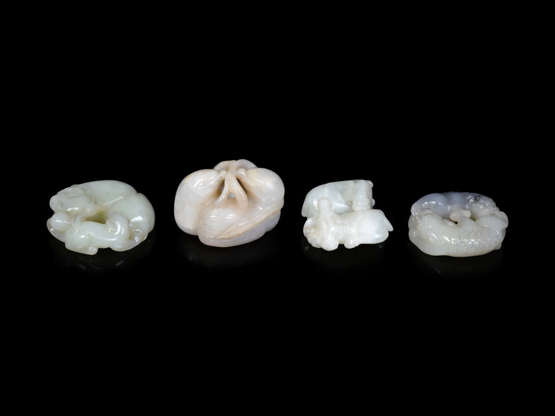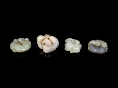 Four Chinese Celadon Jade Carvings of Double Animals