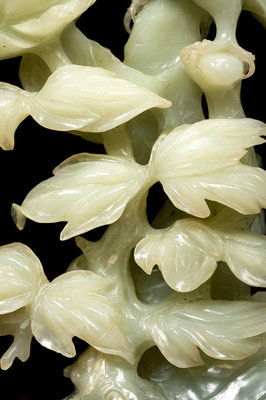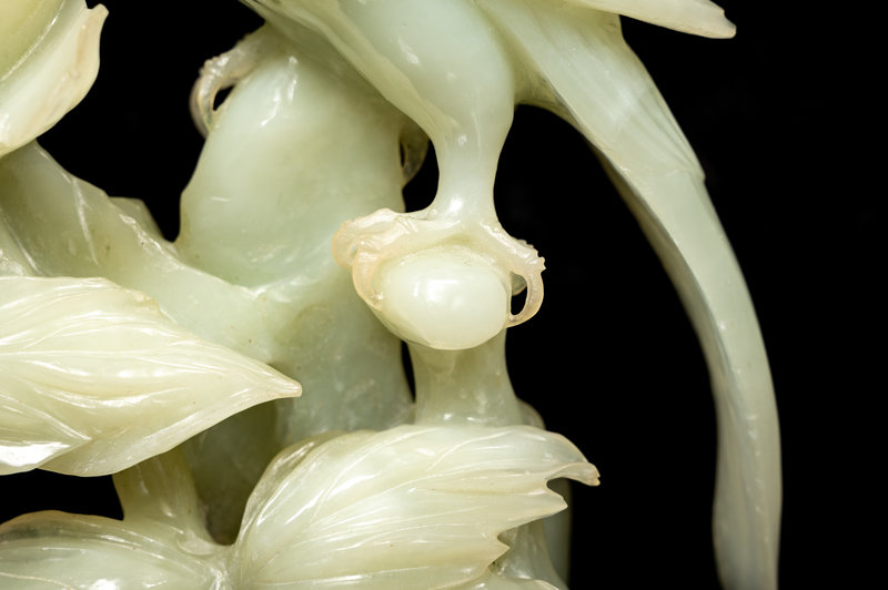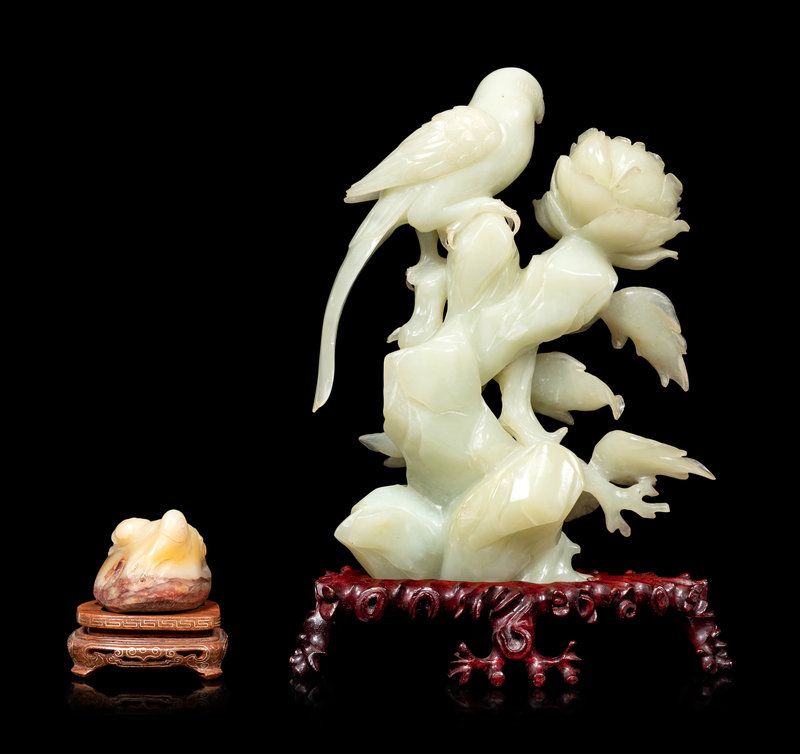 the first a serpentine 'bird and floral blossom' group, a serpentine figure of a female immortal, and two others.
