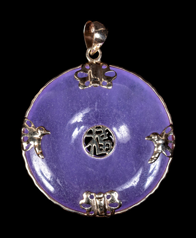 comprising three bracelets and one pendant, each of lavender tone with icy white veins, the stones are possibly treated.
