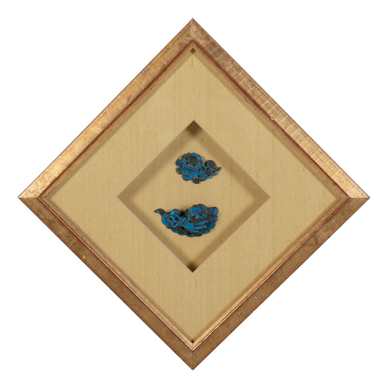 Two Chinese Kingfisher Feather Brooches