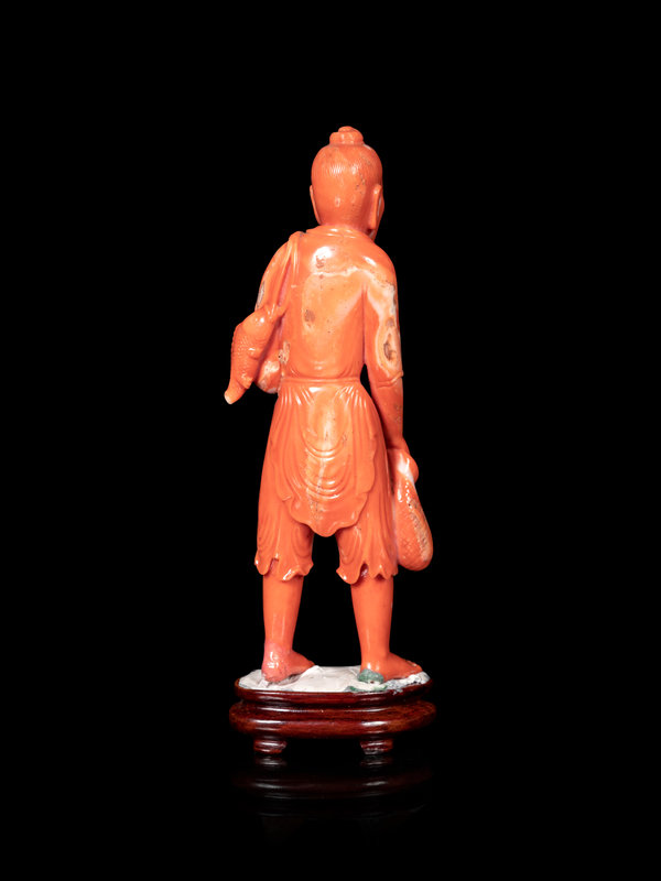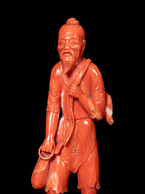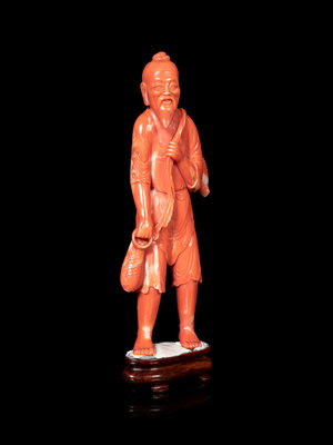 A Chinese Red Coral Figure of a Fisherman