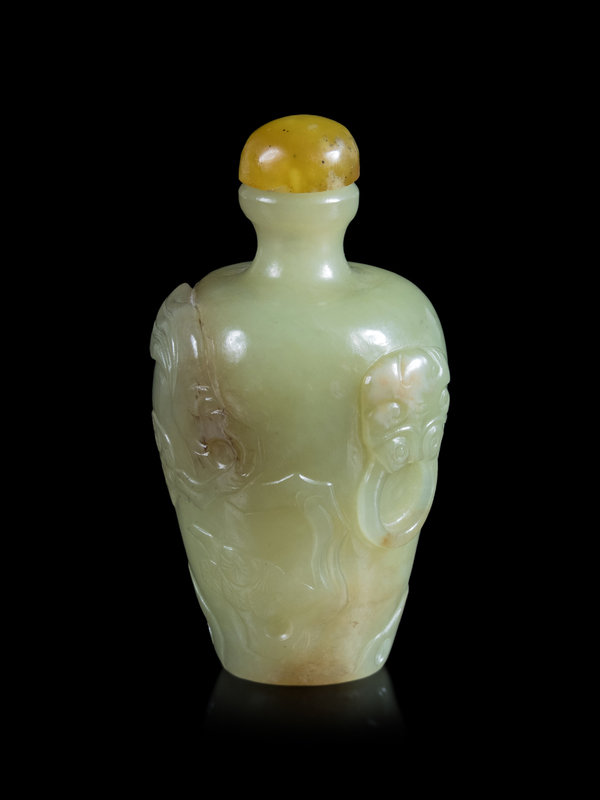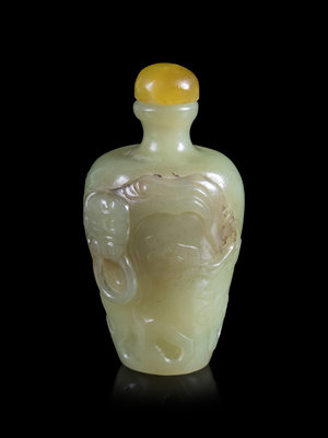 清晚期 黃玉雕松鶴紋鼻煙壺