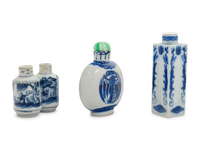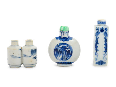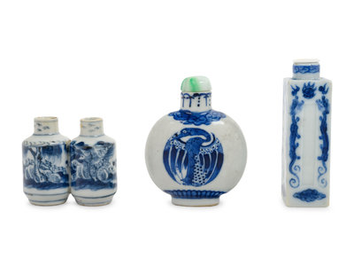 Three Chinese Blue and White Porcelain Snuff Bottles
