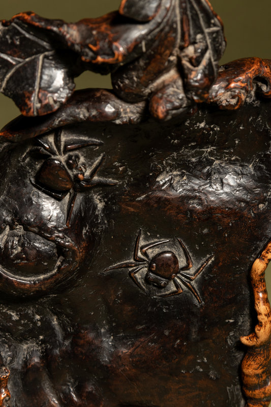 晚清-民國 木根雕喜蛛芭蕉式賞盤