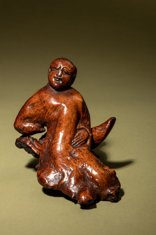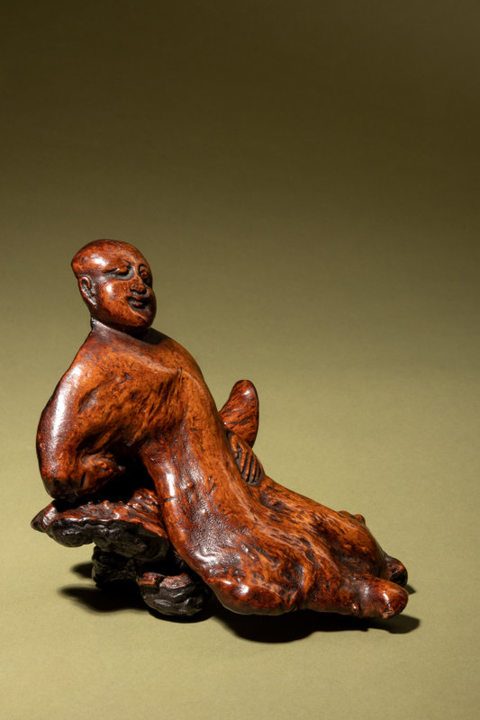 清中期 隨形木根雕醉翁像