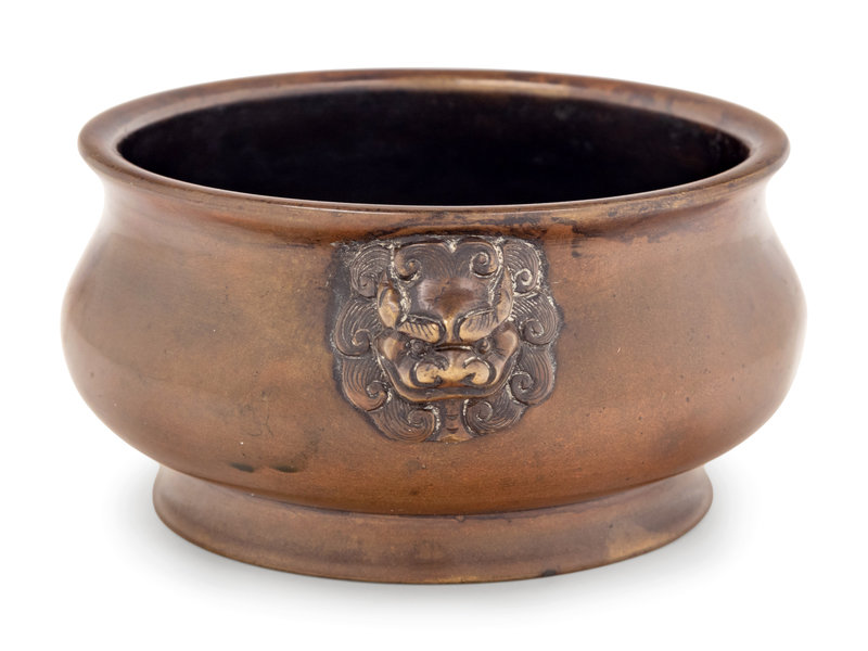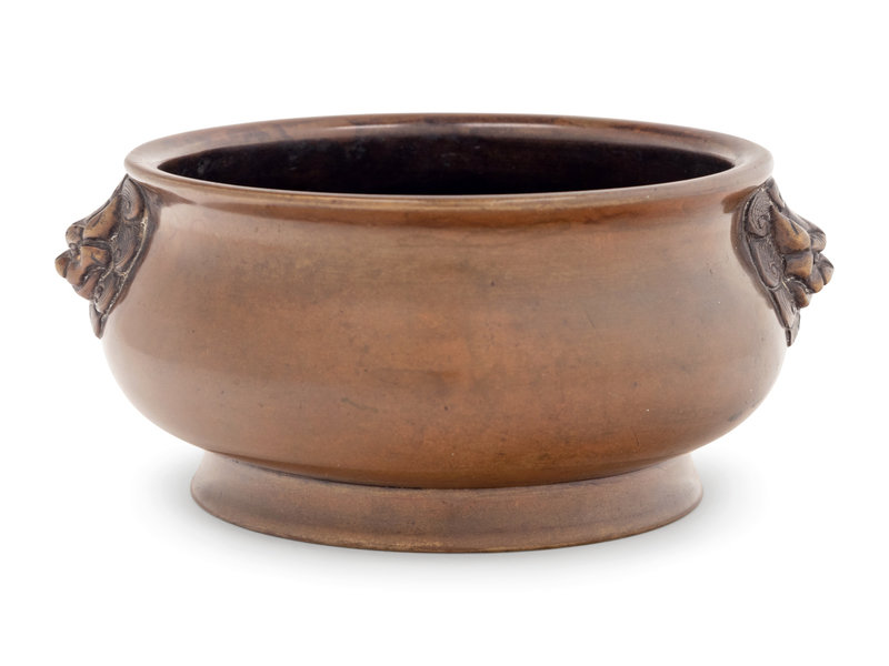 the globular body raised above a straight foot to an everted mouth rim, flanked at either side by stylized animal head handles.