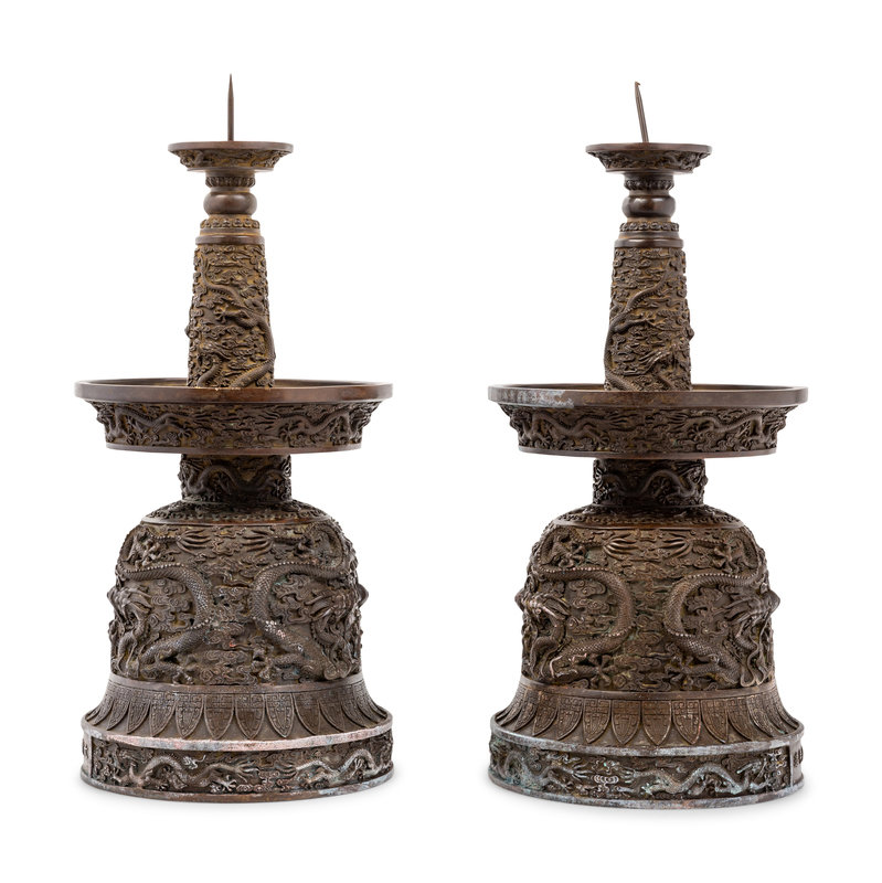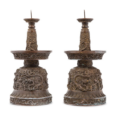 A Pair of Chinese Bronze Candle Holders