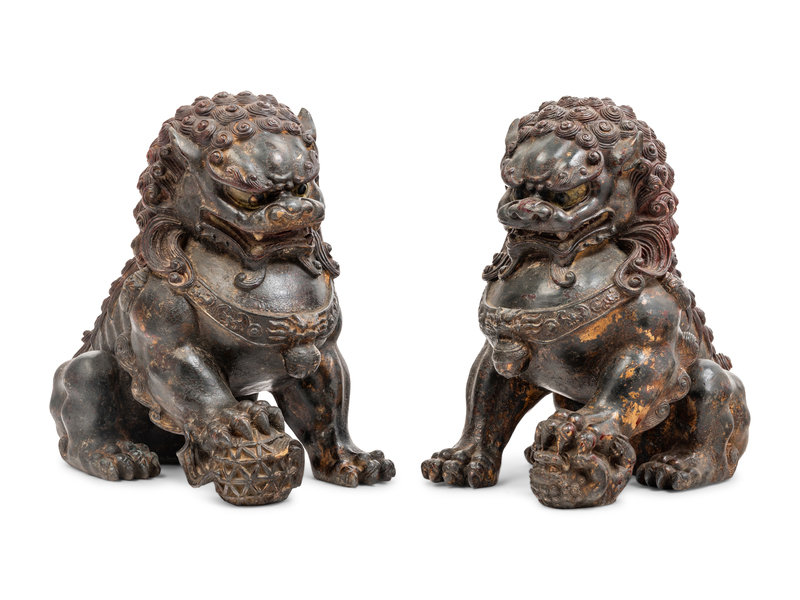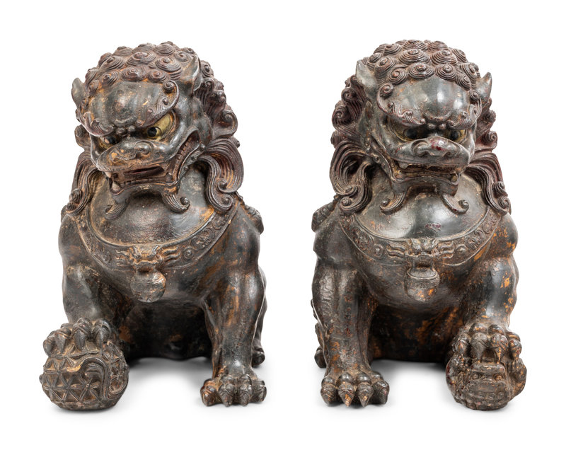A Pair of Chinese Bronze Fu Lions