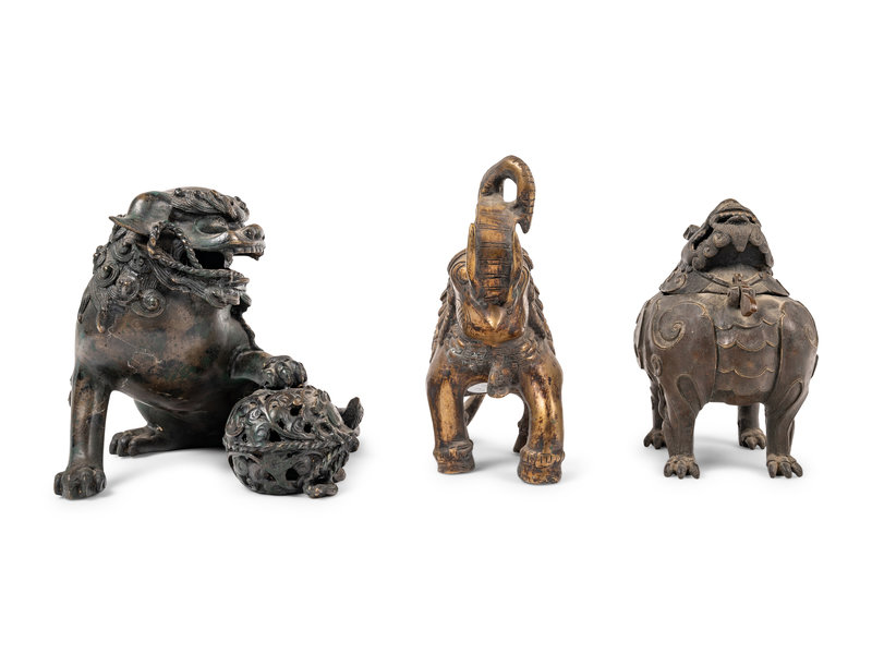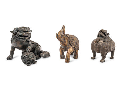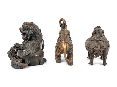 Three Chinese Bronze Figures of Animals