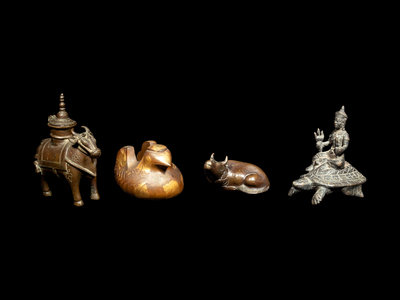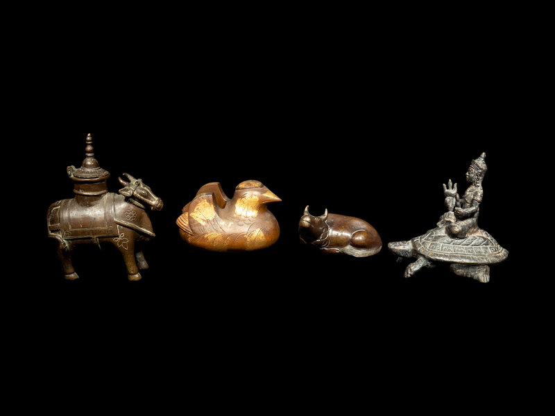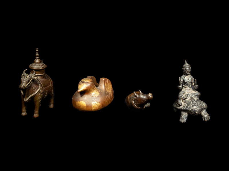 comprising a figure of duck, a recumbent ox, a elephant-form incense burner, and a bodhisattva aside a turtle.