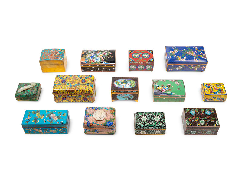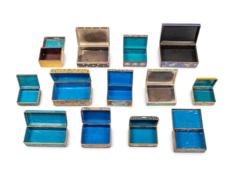13 Chinese and Japanese Cloisonné Enamel Rectangular Boxes