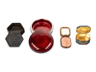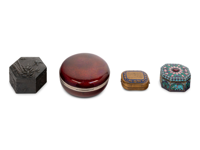 Four Chinese and Japanese Metal Covered Boxes