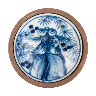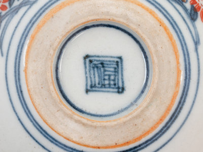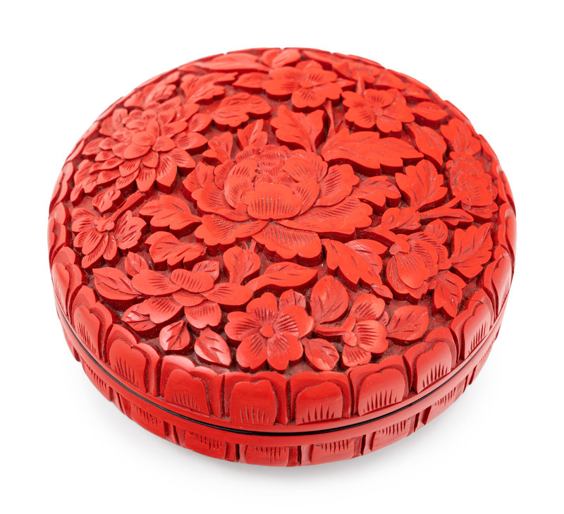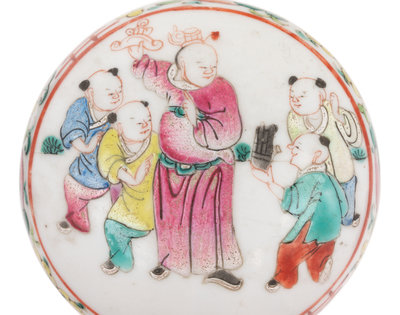 comprising two porcelain examples, one porcelain inset example, and one red lacquered resin example.