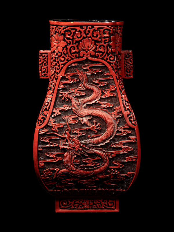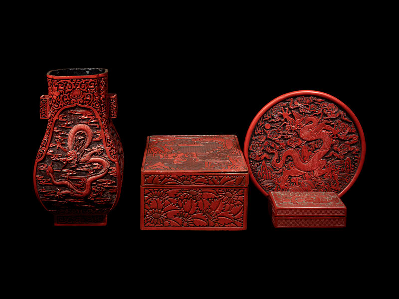 Four Chinese Carved Red Lacquer Articles