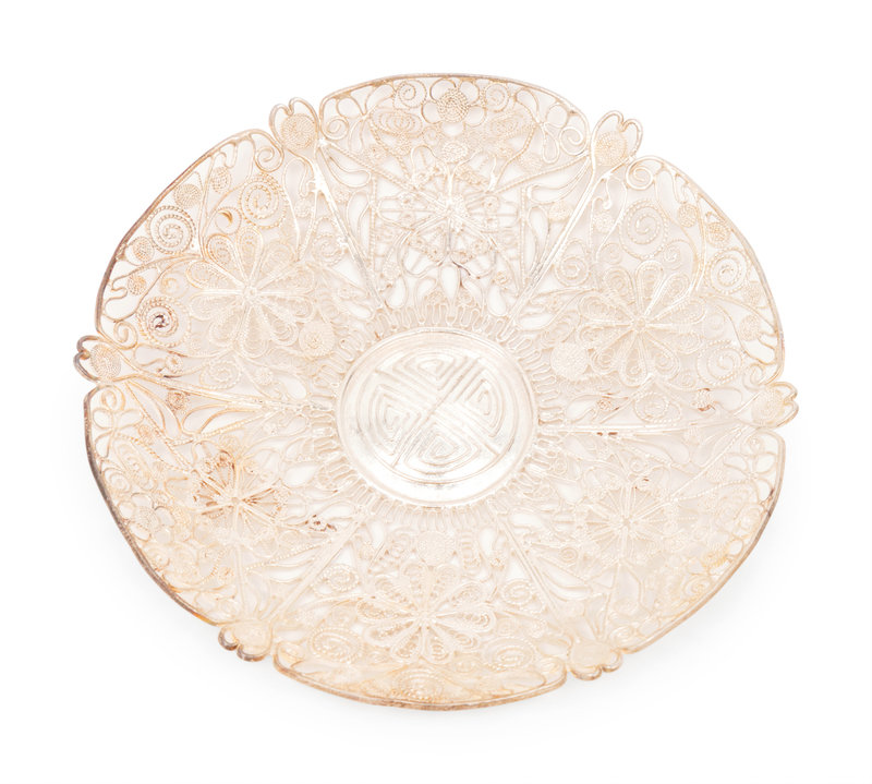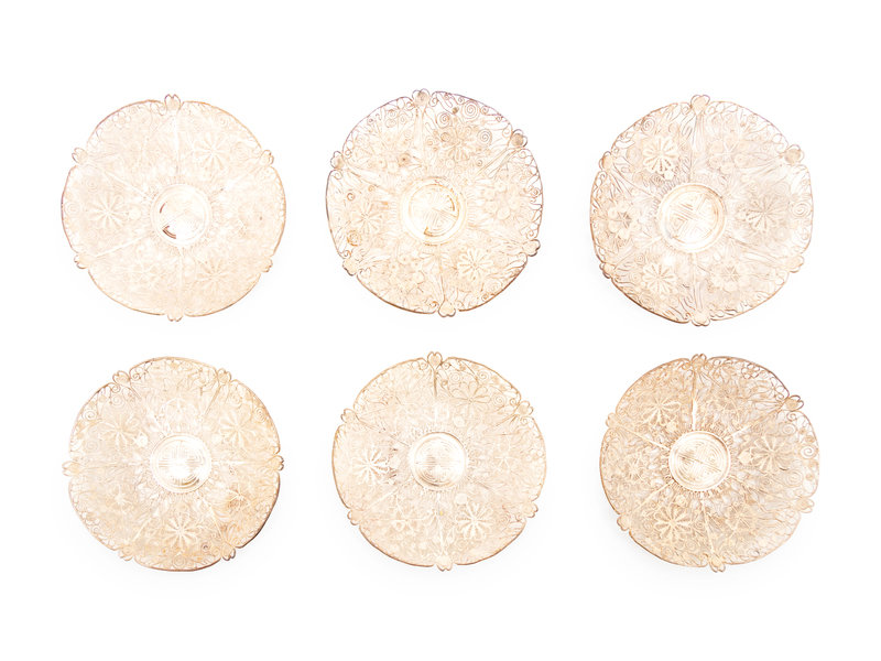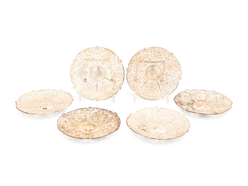 each of circular form, worked with delicate swirls forming various flower heads about a central medallion; four marked '麗生' and '纹銀',
