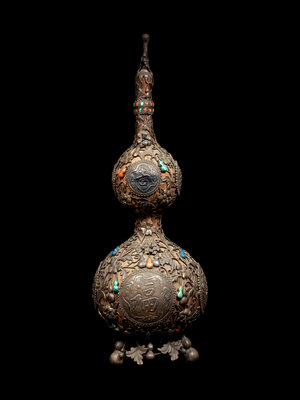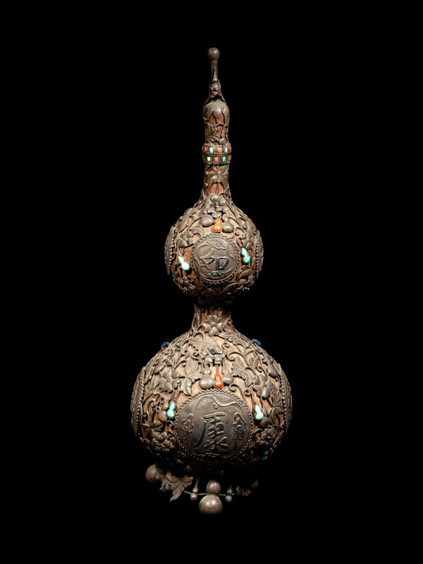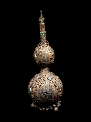 A Chinese Hardstone Inset Metal Mounted Double Gourd Vase and Cover