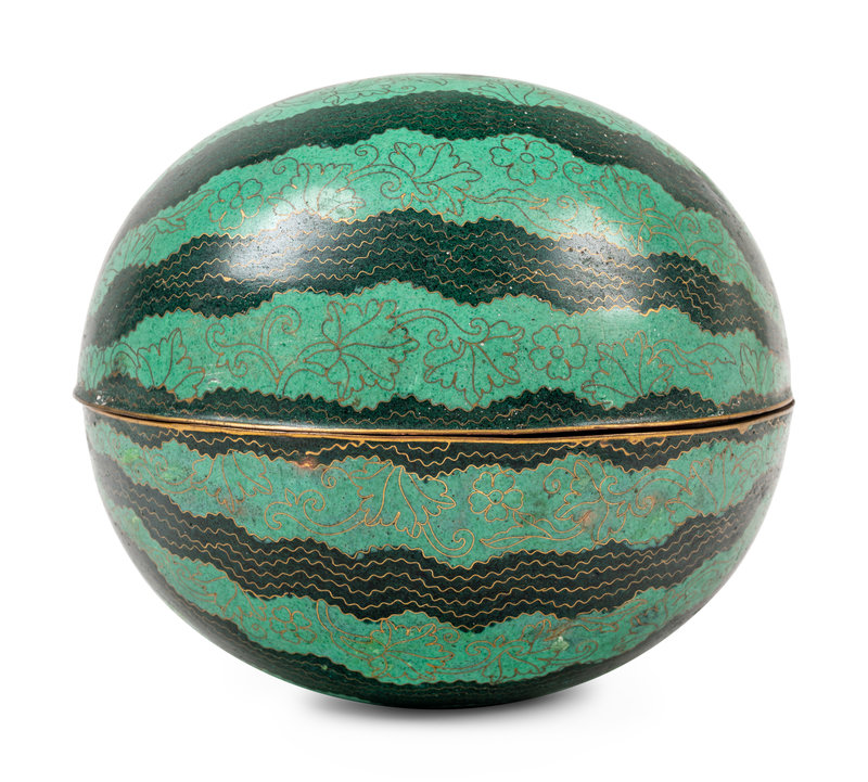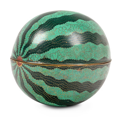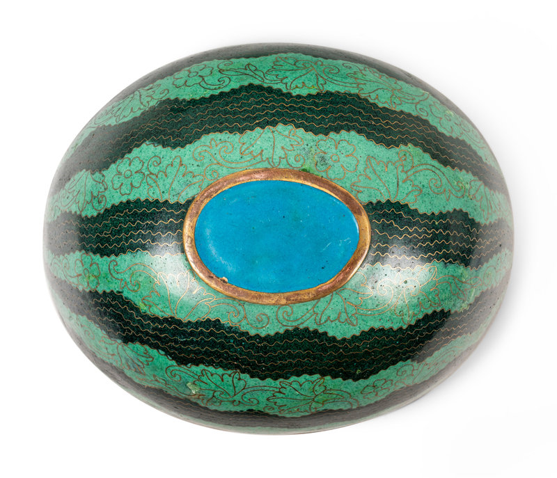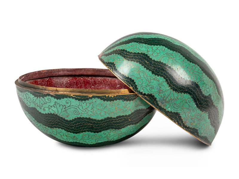 A Chinese Cloisonné Enamel Watermelon-Form Covered Box