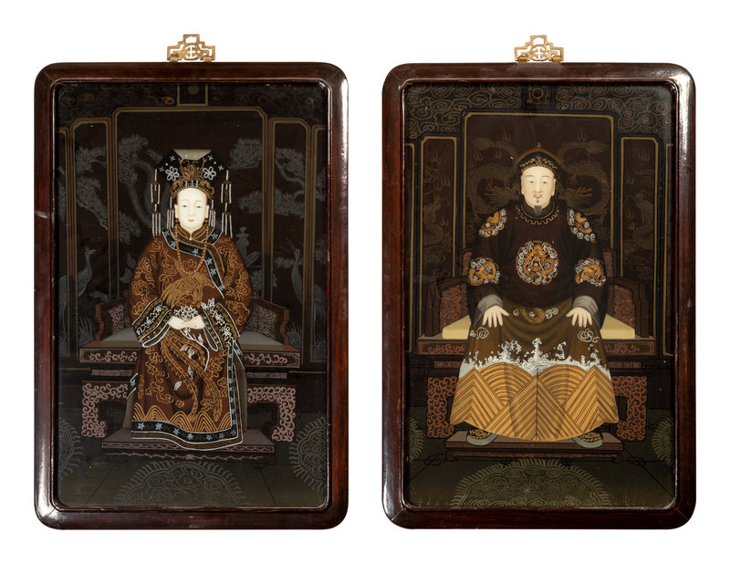 A Pair of Chinese Reverse Glass Paintings