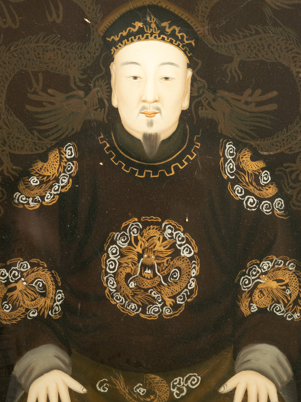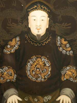 depicted a Qing Dynasty official and his wife, framed.