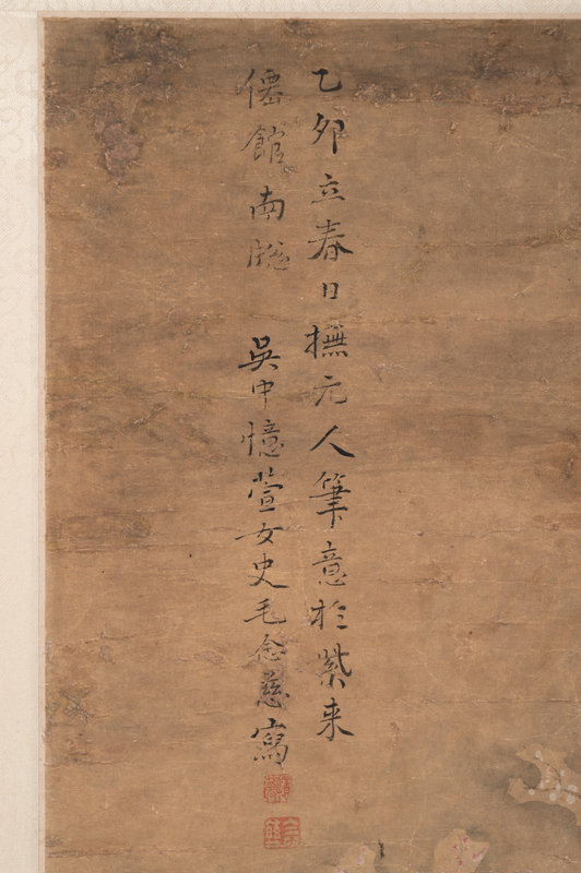 款識:乙卯(1855)立春日,撫元人筆意與紫來仙舘南臨。吳中憶萱女史毛念慈寫。