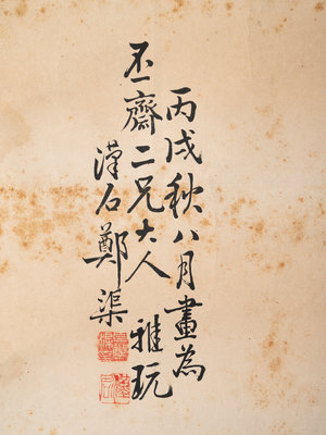款識:丙戌秋八月畫為丕齋二兄大人雅玩,漢石鄭渠。