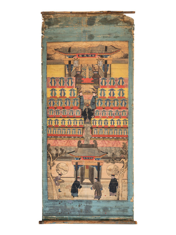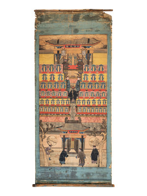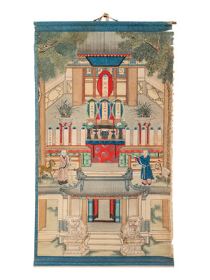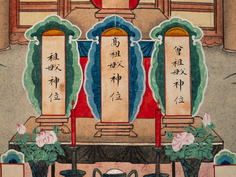each depicting the veneration of the dead, two ink and color painted on silk, one on paper.