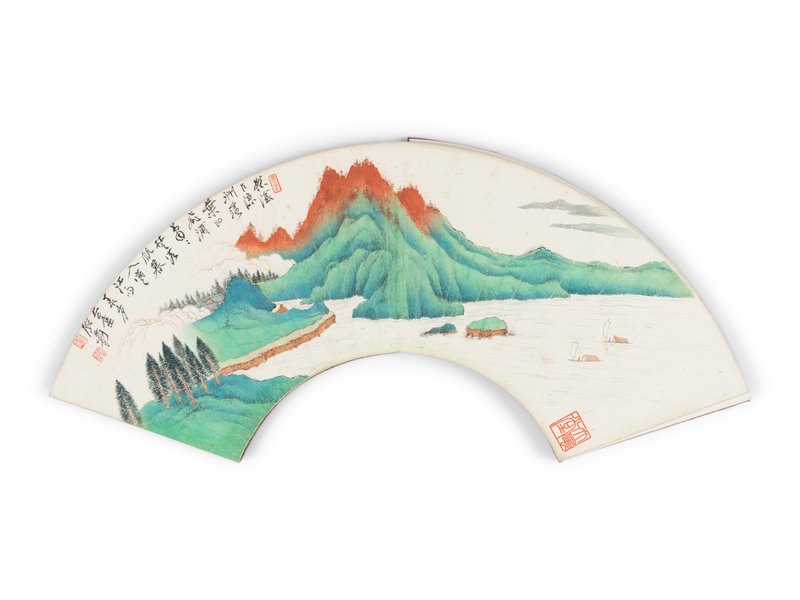 山水扇面八開