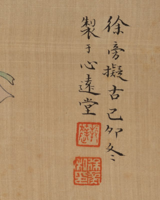 款識:徐旁擬古。己卯(1939)冬制於心遠堂。