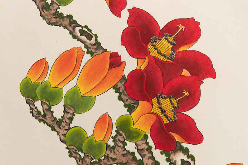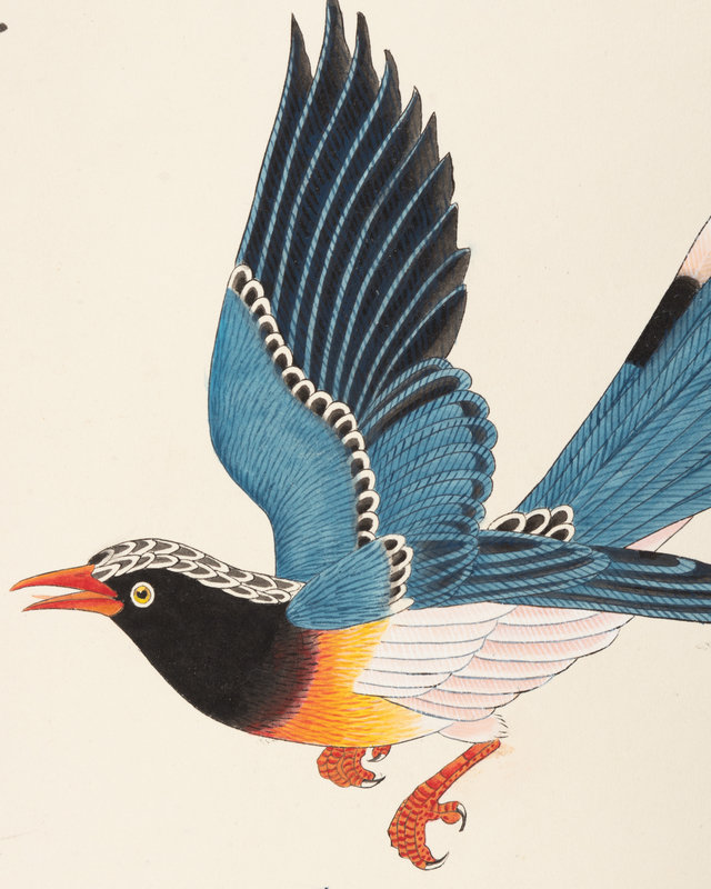each depicting flowers and birds.