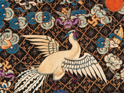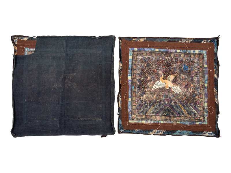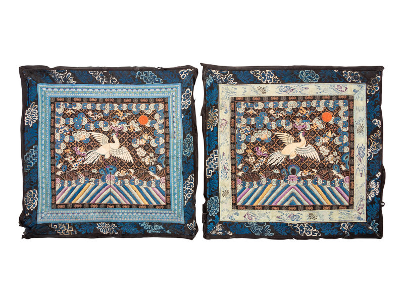 A Pair of Chinese Embroidered Silk Rank Badges, Buzi