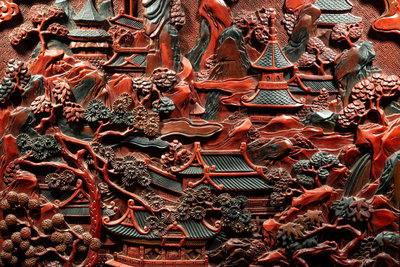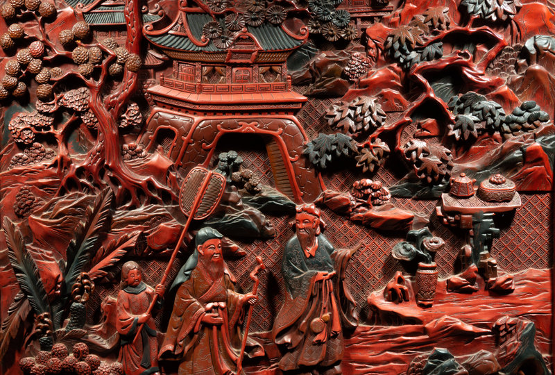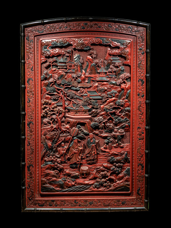 A Large Chinese Cinnabar Lacquer 'Figure' Panel