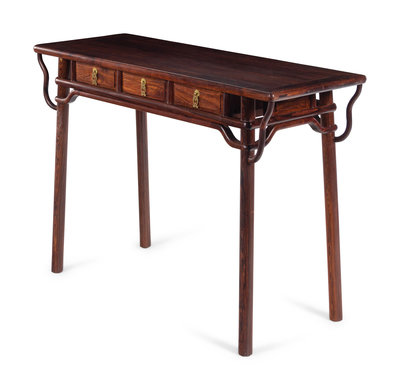 A Chinese Huanghuali Three Drawer Recessed Leg Altar Table