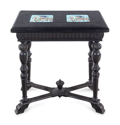 A Chinese Export Porcelain Inset Black Lacquered Wood Flip-Top Mahjong Table